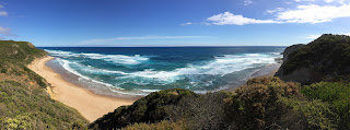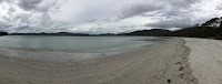 After a long visit we left the lighthouse and headed to a place I saw on the map called “Price’s Lookout” (of course I had to go there :-). Price’s Lookout looks out over Cloudy Bay (Wiki). Cloudy Bay is a large bay with big waves crashing over a long, gradual sloped beach. Standing at the point and looking out at it I immediately thought, “this looks like a great place to surf” (admitting that I know nothing about surfing, :-). Well, as it turns out each year Cloudy Bay plays host to the ‘Bruny Island Surf Classic’ – a Tasmanian surfing championship held on the island. So I guess you don’t have to be a surfer to know good surfing areas when you see them. 🙂 Looking out over the waves I couldn’t help but to think of my good friend Rob and his brother Jim..the only “surfer dudes” I know. 🙂