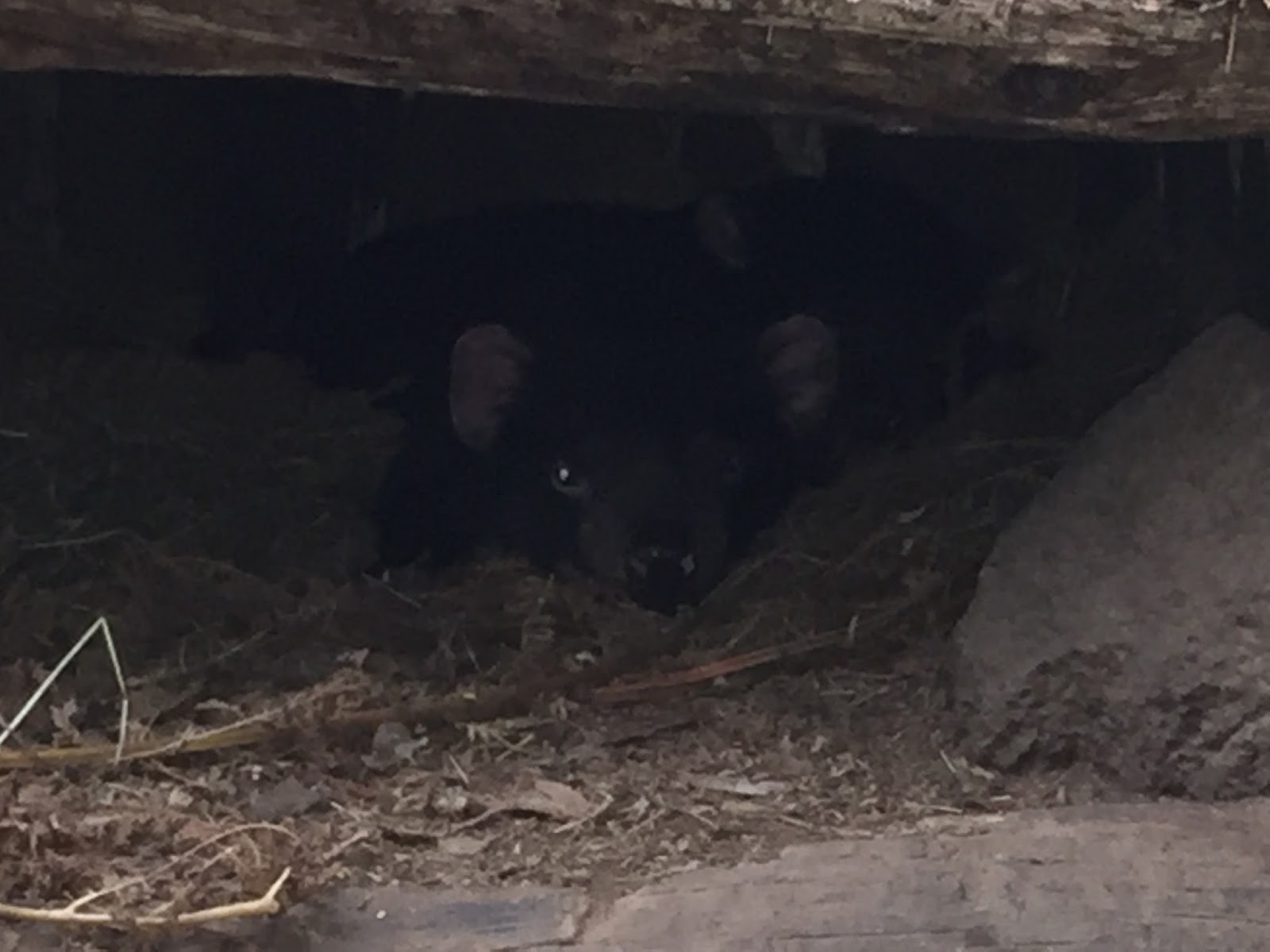 As we sat and waited for the next ferry we saw a black with white spots eastern quoll (Google) (see blog post from Day walk across the street in front of us. We got out and tried to get a picture but it hid and we did not see it again. It was kind of funny because there was an Australian couple who had also seen it and were looking for it and they had no idea what it was. I told them, “it’s and eastern quoll” and they were like, “how did you know that….we’re from Australia and we didn’t know what it was”. I had seen them at the Devil habitat that I visit on Day 22 – Convicts and Devils. Here are a couple of pictures I took that day….