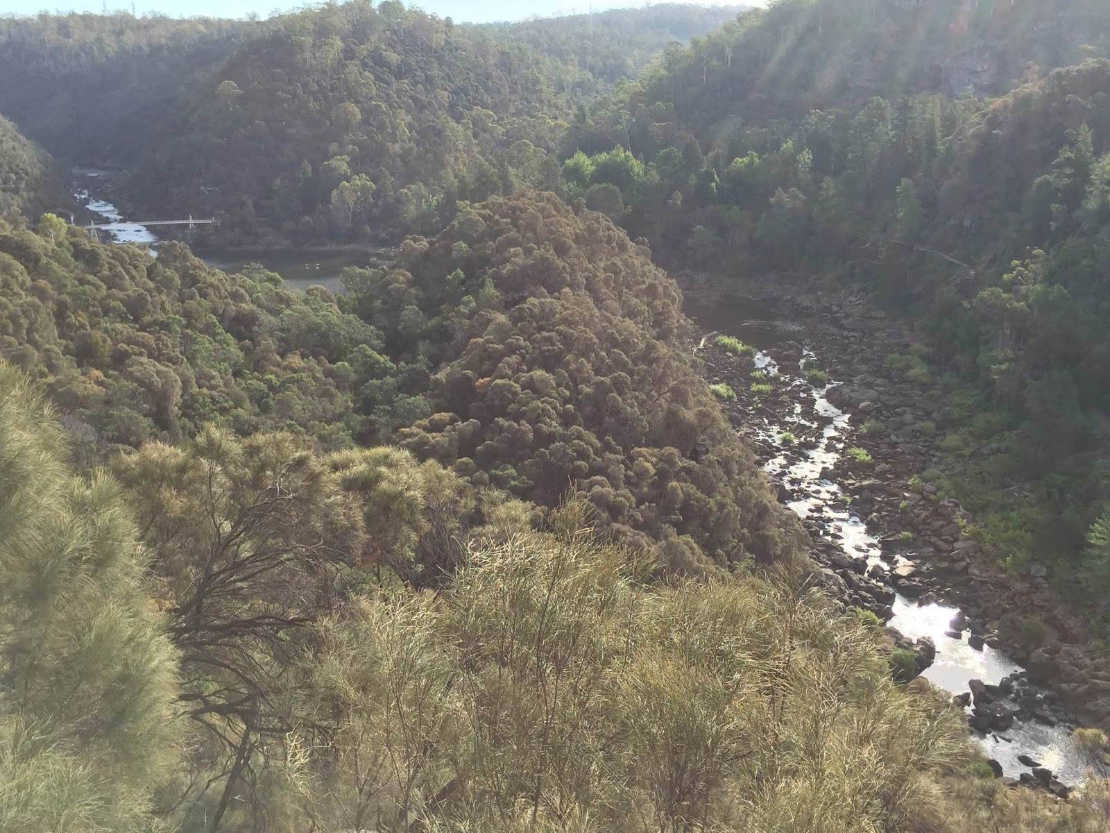 While I was standing at the top looking around I asked a young couple if they would take my picture. As soon as I spoke they asked where I was from, as they could tell I was from the US :-), and we started talking. His name was Tenzin and he was from Salt Lake City. Her name was Aranya and she was from London. They had met while studying in NY and were both doing exchange studies in Melbourne. After a few minutes they asked if I could give them a ride to the next small town beyond the Neck (Lunawanna). I said sure. I asked where they were headed and they said they were not sure. They confessed that they hadn’t really planned the day very well and thought they would just walk around or bike around Bruny Island. The problem with that is that Bruny Island is over 100 km long (a little over 60 miles)….as Homer Simpson would say….D’oh! They had actually done pretty well to this point as they had taken a bus from Hobart, came across on the ferry without a car and a “nice older lady” had picked them up at the ferry and brought them to the Neck. So I said, “I’m heading to the lighthouse at the southern tip and then working my way back up through the island and planning to catch the 6 PM ferry back….you’re welcome to ride along if you like”. They were elated. So off we went. 🙂