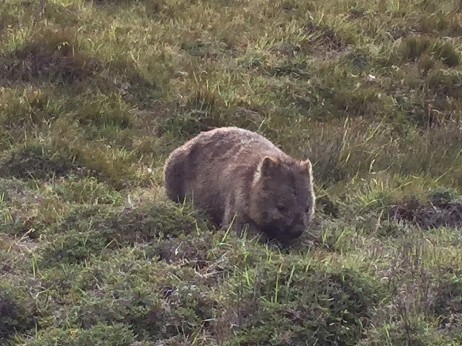 We said hello to Sophie and then left the winery and started driving back to the northern part of the island. We drove back across the “Neck” and stopped to see if maybe any penguins had come out (they frequent this area) but unfortunately they had not. They normally come out later in the day/evening and since the last ferry leaves at 7:15, unless you’re spending the night on the island (which we were not) you may not see them. But it was worth stopping for. We did see an echidna from the road but he disappeared into some thick brush before we could get his picture.