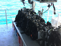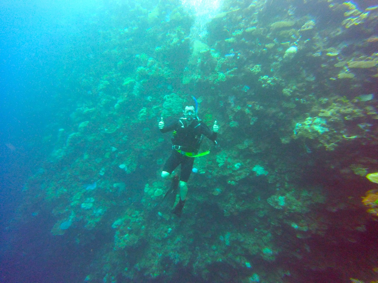 As I mentioned on day 1, during the dive meeting you’re told how long you can stay down and/or how many “bars” of oxygen you must have when you return to the boat. The best dives are of course the ones where you stay under the maximum amount of time but that ultimately depends on how deep you dive, for how long and how much oxygen you consume. During the dive you stay in communication (using hand signals) with your dive partners and (if present) the dive master leading the dive. The two pieces of information you exchange regularly are “is everything ok” and “how much oxygen do you have”. When diving from a boat you must take into account your return trip to the boat while watching your oxygen consumption. Long story short, Jake and I both surfaced right at the dive ladder with exactly 50 bars (the return limit for the dive) and at exactly 50 minutes (the maximum time for the dive). It was a great dive.