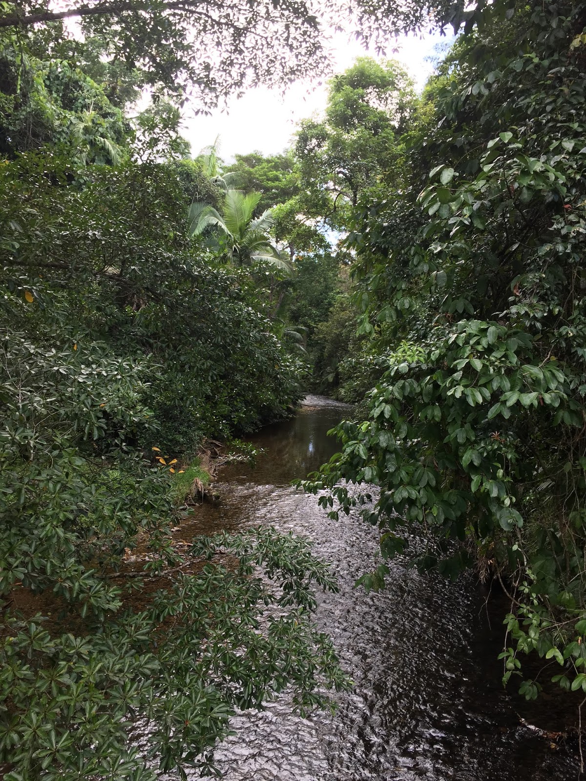 My first hike was a 1.2 km loop through the rainforest on a primitive trail that began at my camp. Being my first hike in the rainforest and a primitive trail (not well marked or maintained) I did my best to carefully/plan watch every step while also keeping an eye to the tree tops for animal life. It was a good hike and a good intro to the rainforest with some cool flora but unfortunately not much fauna. Aside from some birds the only fauna I saw were more giant spiders!