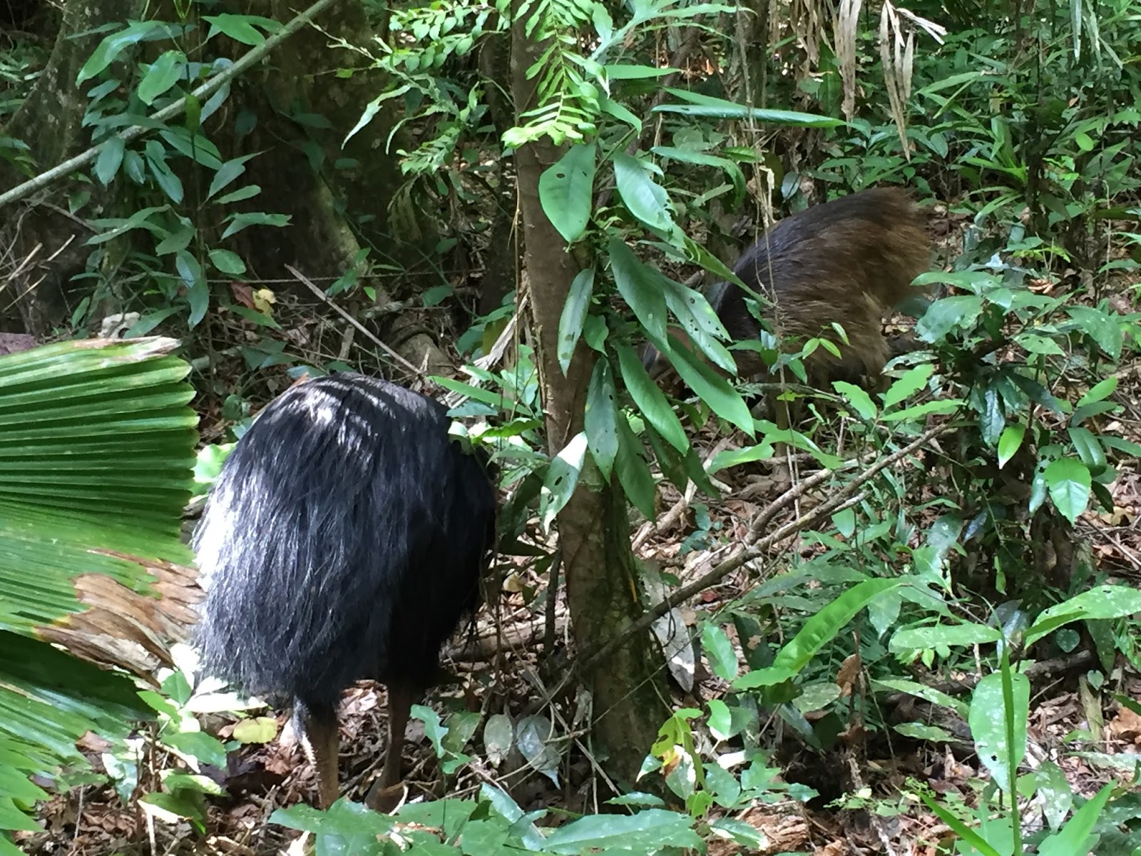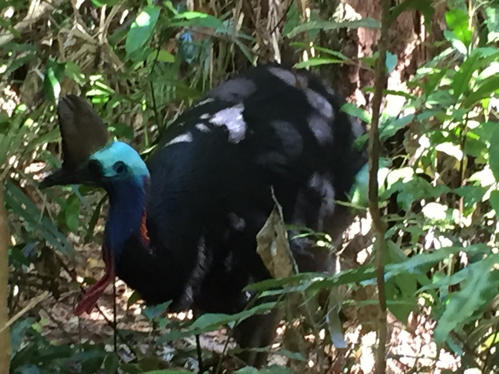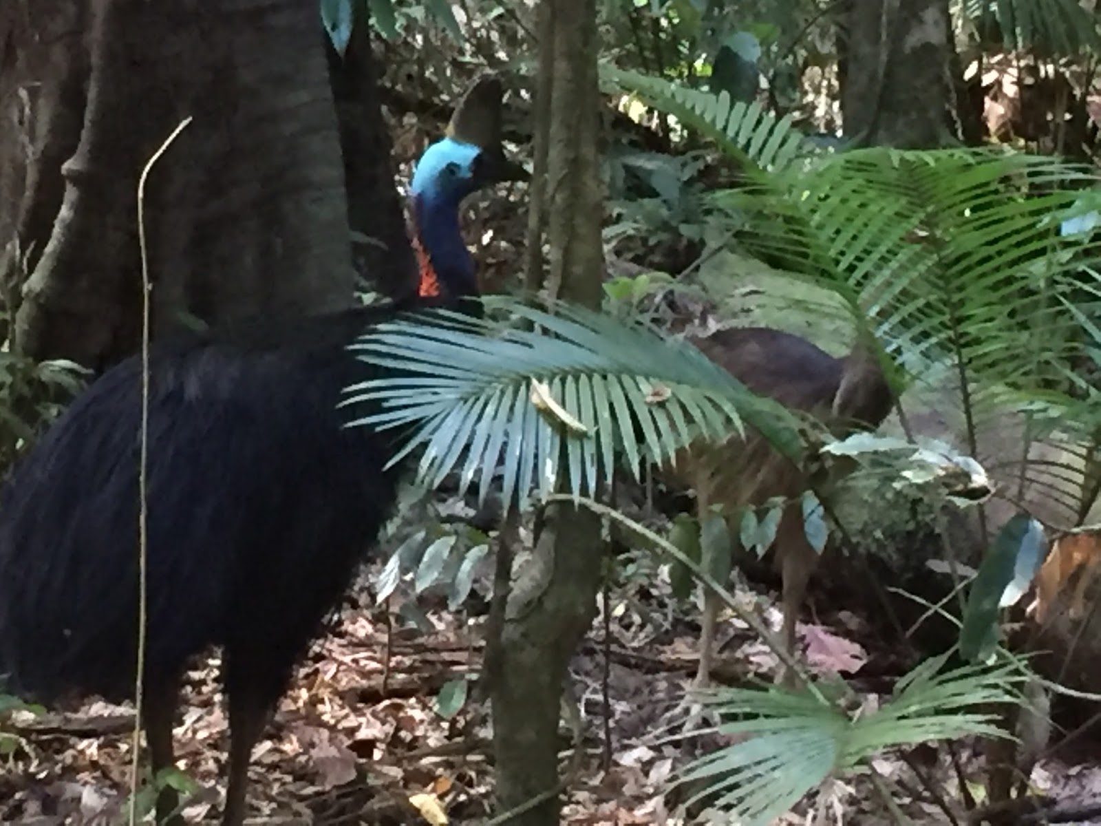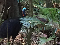 As I approached the end of the walk I saw a family of three just ahead of me standing silently and looking into the bush. As I slowly approached the little boy pointed to the bush and said, “Cassowaries” (Google, Images). I was elated as this was the #1 thing I wanted to see in the Daintree. Although they are native to the Daintree, and there are signs everywhere on the road telling people to slow down and watch for Cassowaries crossing, they are actually difficult to see in the wild.